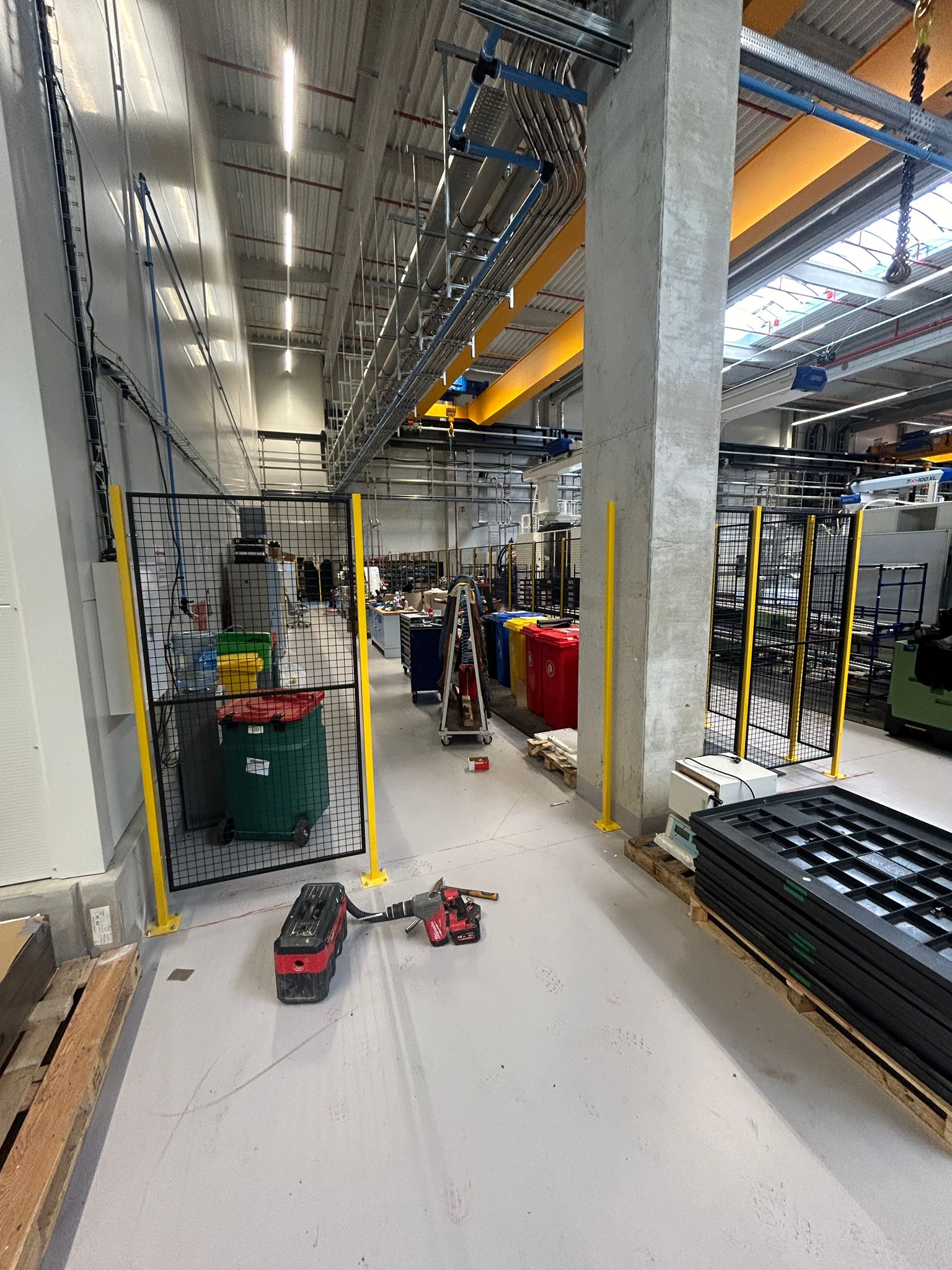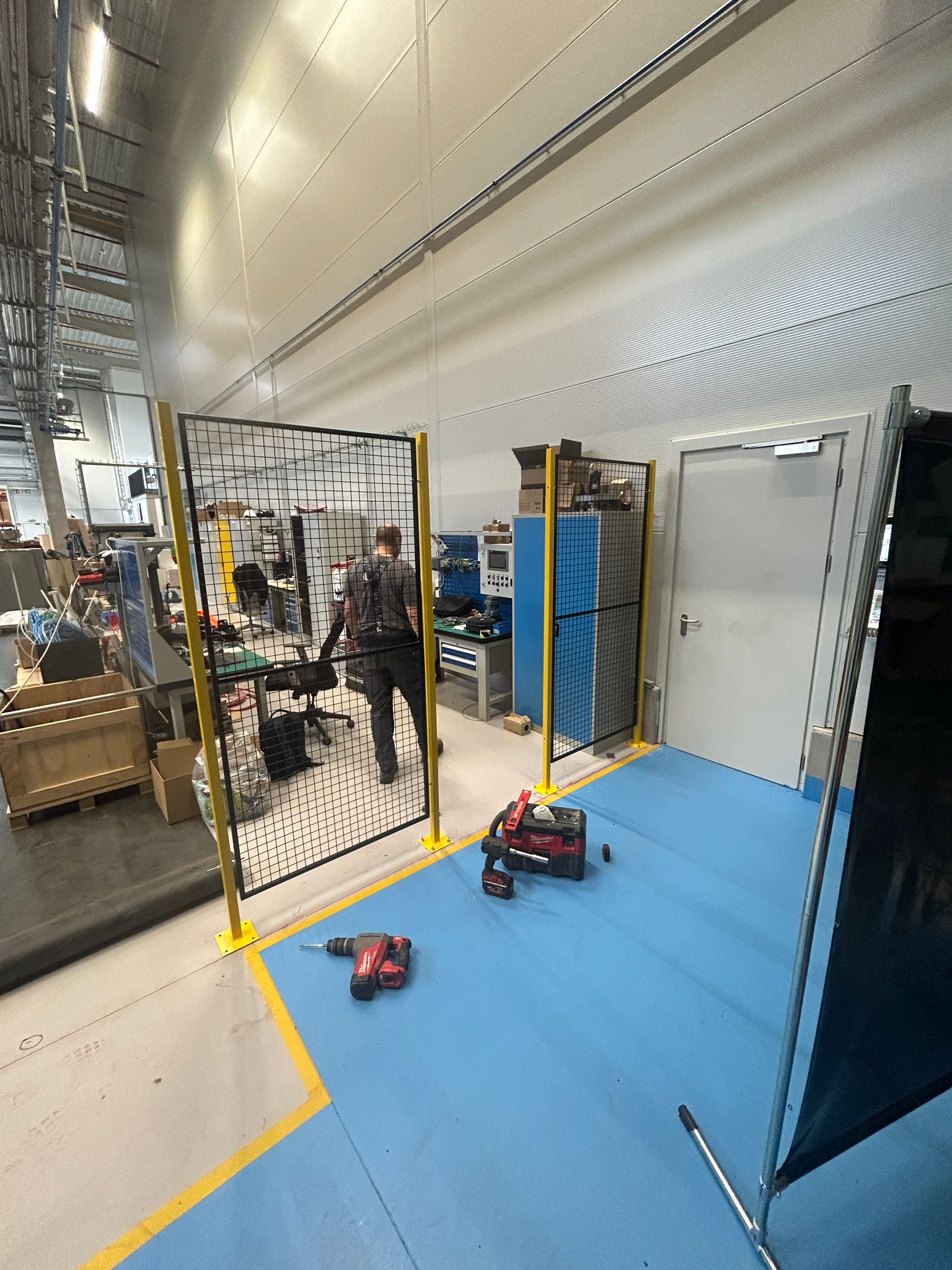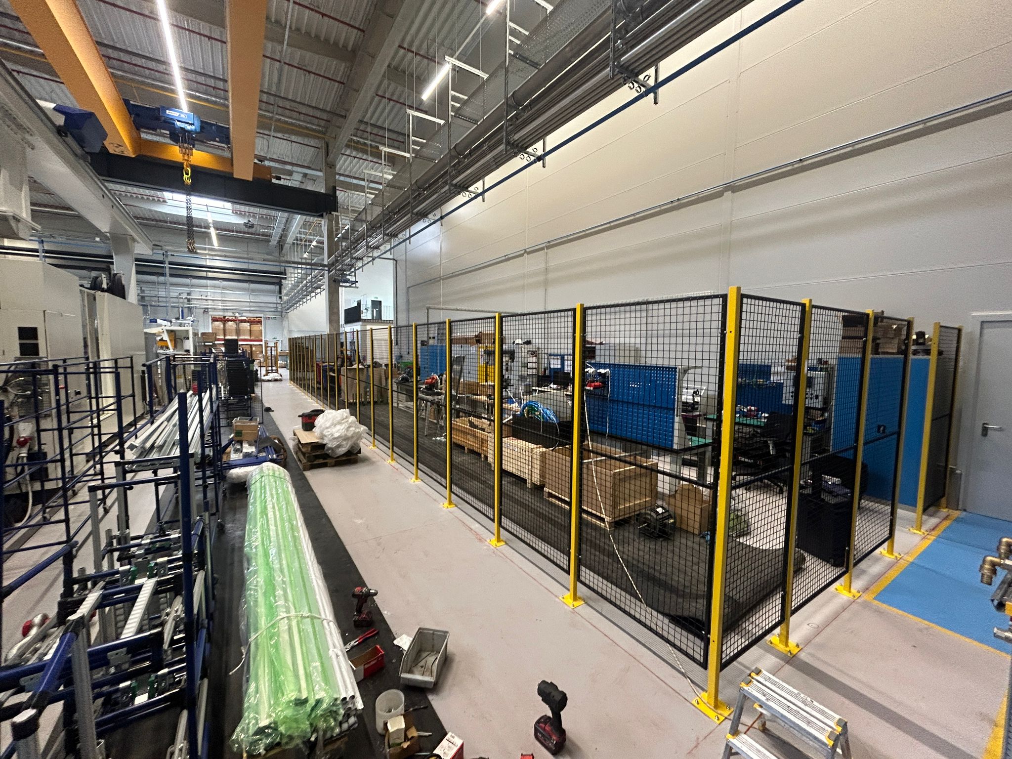 Instalace drátěných plotů v tovární hale